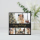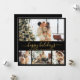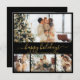 Cartão de Natal Elegante "Feliz Feriados", Script de Caligrafia Preto e Dourado com 5 Fotos. Esta festiva, mimalista, balística de quatro (4) colagens fotográficas e uma (1) foto na modelo do cartão de feriado no verso apresenta um bonito texto "Felizes Feriados" que é escrito em um belo roteiro de fontes, com letras esplêndidas, com letras de mão. No verso, saudando o modelo de texto com um pequeno motivo cardíaco e um modelo horizontal de foto. Bonito cartão de boas-vindas para sua família e amigos no Natal.