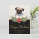 Espalhe a alegria e aplauda esta temporada de festas com o nosso Cartão de Natal Feliz dos Felizes Howlidays! Esta carta adorável apresenta um cachorro de aquarela fofo com lindas flores de Natal e ouros flocos de neve. Você pode personalizar o cartão com sua própria mensagem pessoal, fazer-o como é perfeito para enviar amor e desejos calorosos a seus amigos e família.
