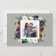 O design de cartão de Natal Elegante e moderno "Feriados Felizes" floral de inverno apresenta uma foto horizontal moldada por um padrão floral de cor d'água ricamente colorido com Bordéus / vermelho burgundy, azul marinho, rosa e flores de creme com fundo de cinza de platina. A parte de trás do cartão contém uma segunda foto quadrada moldada por um floral coordenador.