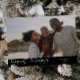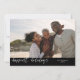 Cartões de foto de Natal mínimo e limpo, com um roteiro casual escrito à mão que diz "feriados mais felizes" junto com sua foto. Cor preta.