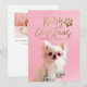 Espalhe alegria com este cartão de fotos moderno e elegante com tema de animal de estimação para as festas, perfeito para os amantes de cães e gatos! Com uma sobreposição de palavras "Feliz Natal" em uma tipografia moderna de letra manuscrita e uma pegada de pata combinando em folha de ouro falsa. Adicione 2 fotos OU mantenha Sparkle, a Tiny Chi, para um glamour extra e sua mensagem pessoal neste design de foto de animal de estimação chic e divertido para as festas e faça dele um original único. Segunda foto no verso. DICA DE FOTO: Pré-corte sua foto de forma semelhante às fotos do modelo ANTES de fazer o upload e/ou use a FERRAMENTA DE CORTE na seção PERSONALIZAR para ajustar a colocação dentro da área do modelo. Para ajuda com design ou personalização ou transferência de design para outro produto, entre em contato com o designer ANTES DE FAZER O PEDIDO através da guia de MENSAGEM do Zazzle Chat abaixo ou envie um