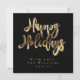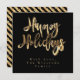 Tipografia de Férias Felizes Elegante Preto e Dourado, Texto de Folha Dourada Falsa e Listras em Fundo Preto, Moderno Script, Cartão de Natal Chic