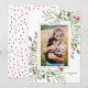 Envie seus cumprimentos de férias com estilo com este lindo cartão com sua foto rodeada por folhagens em aquarela e frutas vermelhas. Adicione sua saudação personalizada e nomes/ano para personalizar. Elegante e sofisticado, mas simples e atemporal, o design perfeito para cumprimentos alegres.