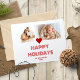 Este alegre e brilhante design apresenta duas das suas fotos favoritas unidas no meio por um coração e uma saudação de Boas Festas em tipografia moderna. Juntamente com o seu apelido e o ano em uma fonte simples menor abaixo, as palavras e o coração formam a forma de uma Árvore de Natal. O coração e o texto estão em cor vermelha festiva, mas podem ser alterados. Para personalizar este cartão, clique no botão "Personalizar" e altere as fotos e o texto para os seus.
