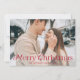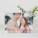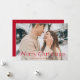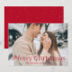 Cartão de feriado simples com foto horizontal de hemorragia de cheio com "Feliz Natal", exibido em uma elegante inscrição vermelha. Personalize o elegante cartão fotográfico de Natal com seu nome de família e o ano. A placa reverte para exibir um fundo vermelho com pontos brancos sutis.