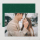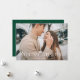 Cartão de feriado simples com foto horizontal de hemorragia de cheio com "Feliz Natal", exibido em letras brancas elegantes. Personalize o elegante cartão fotográfico de Natal com seu nome de família e o ano. A placa se reverte para exibir um fundo verde com sutis pontos brancos.