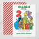 Celebre o dia especial do seu pequeno com este divertido convite de aniversário da Rua Sésamo com Elmo, Cookie Monster, Beto, Ernesto e Abby Cadabby decorando uma árvore de Natal. Perfeito para uma celebração de aniversário festiva, este cartão combina o espírito natalino com uma mensagem de aniversário. Personalize com o nome da criança, idade e detalhes da festa para torná-lo exclusivamente deles. Com uma vibrante borda listrada de vermelho e branco em forma de bastão de doce, certamente causará uma impressão deliciosa nos convidados.