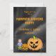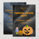 Um convite colorido para uma Festa de Corte de Abóbora. O design apresenta uma grande Jack-O-Lantern ao lado de uma menor e um menino pronto para fazer a escultura. Um céu noturno nublado e com nuvens finas forma o fundo. Todo o texto (frente e verso) é editável e facilmente alterado usando o modelo. Se forem desejadas alterações adicionais no texto (fontes, cor, tamanho ou posicionamento diferentes), selecione "Personalize este design" e, em seguida, selecione "Personalizar com o Editor de Design". Detalhes adicionais da festa estão no verso em um fundo escuro semelhante. Este é um design para download - que permite fazer alterações, baixar o design (ambos os lados) e imprimir ou enviar convites por e-mail ou mensagem de texto.