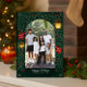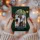 Envie votos calorosos nesta época de festas com um lindo cartão de Natal familiar com um design festivo verde e dourado, lanternas brilhantes e detalhes alegres de azevinho. Perfeito para compartilhar amor, alegria e espírito natalino com amigos e familiares. Personalize com sua própria foto e saudação para um presente sincero.