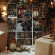 Uma design de festa de Natal quente e convidativa, com lanternas vintage brilhando entre bagas sagradas, verde-pinho e texturas rústicas. Perfeito para criar uma atmosfera festiva de férias cheia de charme e espírito festivo.