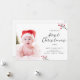 Um belo cartão de Natal, perfeito para compartilhar a alegria do primeiro Natal do seu filho. O design é acentuado com pererecas festivas nos cantos, acrescentando um sutil toque de férias. Personalize o cartão com o nome do seu bebê, o nome da família e o ano. Substitua a foto da amostra por sua para criar uma saudação exclusiva e memorável.