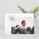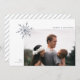 Este na moda, um cartão com fotos de férias com design mínimo japandi, apresenta um simples floco de neve no canto superior esquerdo do modelo de foto, que está fora do centro... definido para a parte inferior direita. Esta placa apresenta fontes minimalistas e modelos de texto fáceis de personalizar! A parte de trás contém linhas azuis finas e obcecadas na diagonal sobre um fundo branco.
