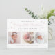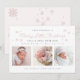 Cartão de anúncio de nascimento moderno e festivo apresenta "Merry Little Christmas" em tipografia de script azul-turquesa, estatísticas de nascimento e 3 das suas fotos favoritas com pequenos flocos de neve.