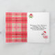 This cute and fun holiday card can be personalized with a family name or title. It features an adorable flamingo in a santa's hat and fairy lights on a pink and red plaid background. The text combines sans serif fonts for a stylish and modern look. Winter snowflakes and patterned baubles add a festive touch.