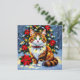 Cartão De Festividades Festive Folk Art Cat with Family Photos Custom