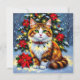 A personalized Christmas card with a front cover of a festive cat, poinsettias and a Christmas tree outside on a snowy day. On the back you can add a custom message and three family photos!
