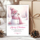 Celebrate the season with this cute watercolor pink coquette snowman kids Christmas card, set in a magical snowy forest. Editable text lets you personalize instantly, and the digital download provides an easy, fast, and festive holiday greeting.