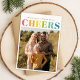 Este "Festivo Colorido Feliz Natal Quatro Cartão de Férias Fotográficas" traz um toque vibrante aos seus cartões de natal. Apresentando um design de "Cheers" multicolor e uma colagem de momentos familiares queridos, ele adiciona calor e alegria à estação. O estilo brilhante e moderno captura o espírito do Natal, enquanto a mensagem personalizável permite que você compartilhe seus desejos sinceros. Perfeito por espalhar alegria de férias para amigos e entes queridos.