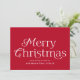 Cartão simples de férias de negócios com "Feliz Natal", apresentado em letras brancas elegantes e com fundo vermelho. Personalize a frente do cartão de Natal não fotográfico com o seu nome comercial. A placa reverte para exibir sua mensagem pessoal em letras brancas cercada por sutis pontos brancos em um fundo vermelho.