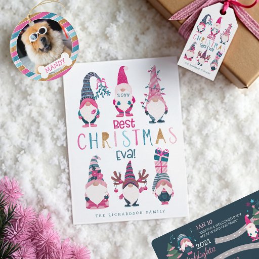 Com um ano tão memorável você tem que compartilhar. Envie este ano divertido para a sua família e amigos, com o nosso cartão de Natal. Compartilhe seus momentos favoritos, aventuras e destaques de 2021 que são colocados ao longo da estrada sinuosa. A estrada é enquadrada por várias ilustrações genômicas, árvores de Natal, Papais noeis de gnomo e presentes. Um cartão de Natal único e divertido, perfeito para compartilhar com familiares e amigos distantes. Design por Moodthology Papery.