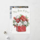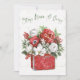 Temporada Rústica V | Belas folhagens de Natal e flores vermelhas e brancas são agrupadas em um recipiente vermelho. A frase "Fique Quente e Aconchegante" e um fundo floral completam a obra de arte. | 57373HR