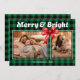 Esta design apresenta uma fita vermelha com duas fotos em um fundo de xadrez de búfalo verde. Este cartão é a escolha perfeita para espalhar alegria neste Natal! Personalize-o sem esforço.