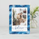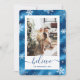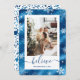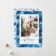 Cartão de Natal de folha azul esbelta e elegante, com flocos de neve. Personalize facilmente este cartão de feriado com a sua fotografia e o seu texto.