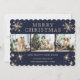 Cartão de férias de colagem de fotos azul elegante com flocos de neve e estrelas. Personalize facilmente este lindo cartão de férias com suas fotos e texto.