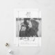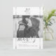 Cartão com fotos moderno de Natal feliz em folha branca e prata. Este na moda e cartão com fotos elegante apresenta um fundo branco, sotaques falsos de folha prateada, tipografia moderna e espaço reservado para a fotografia da sua família.