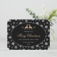 Cartão De Festividades Floco de Neve Moderno Preto Branco Dourado Rena