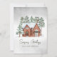 Cartão De Festividades Flocos de neve Aquarela Scandi Árvores de Pinheiro