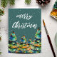 Cartão De Festividades Flocos de Neve de Árvore de Natal Aquarela Verde