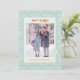 Este cartão elegante apresenta um fundo com padrão de tema de inverno com flocos de neve. Uma foto da família é o ponto focal central. Este cartão moderno e delicado é perfeito para desejar Feliz Natal e Felizes Festas a parentes e amigos. É ideal para celebrar todas as festas durante a temporada de inverno.