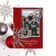 Mande cumprimentos da estação quente com os elegantes Flocos de Neve de Tone Silver no Cartão com fotos Red Happy Holidays. Este wintery personalizado cartão de Natal apresenta flocos de neve com tons prateados adorando os cantos com um fundo vermelho de Natal. Nota: Floco de neve não é um design metálico elevado. É um falso falso falso falso falso prateado floco de neve. Estúdio de Árvore de Crédito de Fotografia de Espaço Reservado.