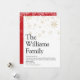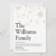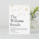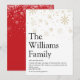 Compartilhe a definição da sua família sobre o que significa a época de Natal para você com esses cartões de Natal modernos elegantes e divertidos. Com tipografia moderna e flocos de neve dourados elegantes. O verso do cartão apresenta flocos de neve brancos correspondentes em um fundo vermelho que você pode personalizar a cor para combinar com o tema das festas de fim de ano. Criado por Thisisnotme©