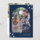 O moderno roteiro de na moda 2calliografia é o primeiro Natal junto com o Sr. e a Sra. Foto casamento, marinho azul de meia-noite com fotografia de arco, texto personalizado e flocos de neve brancos. Fácil de personalizar com duas fotos e texto em ambos os lados!