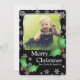 Saudação natalícia de cartão com fotos plano, preto clássico com padrão holly e floco de neve. Personalize com sua própria foto e texto. Ideal para mostrar seu novo membro da família a amigos e familiares ou para personalizar com um retrato da família de cheios. Clique em "personalizar!" para reposicionar ou redimensionar sua foto, se necessário.