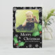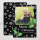 Cartão De Festividades Flocos de neve e Holly na foto personalizada preta