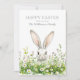 Celebre a alegria da Páscoa com esta charmosa carta plana, com um belo coelho branco aninhado entre um belo arranjo de delicadas flores silvestres de primavera. As pétalas brancas macios com centros amarelos alegres trazem um sentimento fresco e aliciante, capturando perfeitamente o espírito da estação. A saudação elegante do Felz pascoa está no topo, com espaço para personalizar seu nome familiar por um toque atencioso e personalizado. O design deixa o vazio inverso, fazer-o ideal para adicionar uma mensagem manuscrita, se desejar. Quer você esteja enviando desejos de Páscoa calorosos para a família, amigos ou entes queridos, esta carta maravilhosamente projetada é uma maneira perfeita de compartilhar a alegria da primavera.