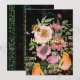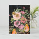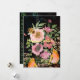 Encontre este cartão de férias oriental com rosas e flores cor-de-rosa em um fundo preto com tons de rosa e verde.