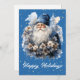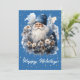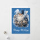 Cartão de Natal exclusivo apresenta um Papai Noel em estilo vintage com roupa azul e floral de inverno e um fundo de céu estrelado, Personalize seu cumprimento com texto personalizável. Este design de arte digital foi criado com a ajuda de software de IA.