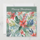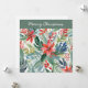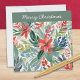 Um cartão de Natal bonito e elegante, com uma ilustração colorida de flores de poinsettia vermelhas em estilo aquarela. Cheio de charme botânico, este cartão de férias é ideal para enviar votos festivos com um toque floral.