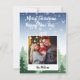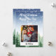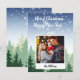 Cartão de férias da floresta de inverno com texto e foto. Feliz Natal e Feliz ano novo no topo com a foto da família no estilo polaroide na parte inferior da carta. O texto e a foto podem ser alterados clicando em "personalizar este modelo" e você pode facilmente alterar o texto e a imagem. O verso do cartão de Natal só tem a design de fundo. Este cartão de festas de família é excelente como uma lembrança e uma vitória da família.