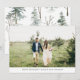 Estes cartões de Natal elegantes e simples apresentam a sua própria foto na frente. A parte traseira do cartão é decorada com um padrão trendy de aquarela de pinheiros verdes, galhos de floresta nua e muita neve.