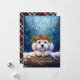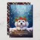 Este adorável cartão de cartões de natal apresenta uma ilustração fofinha do Bichon Frise vestindo uma coroa festiva de Holly, pinheiro e bagas, com flocos de neve suavemente caindo contra um fundo do Céu Azul. O pequeno Cachorro do Bichon Frise está a espreitar o registro de neve para dizer olá! O texto lúgubre "Desejos de Férias Felizes" adiciona uma saudação sazonal quente e pode ser personalizada como quiser. O verso é decorado com uma verificação de xadrez clássica, adicionando um toque tradicional ao design geral. Este cartão bonito e brincalhão é perfeito para enviar alegria de férias para a família e amigos, e o nome e data personalizáveis fazem dele uma marca personalizada.