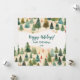 Um design rústico de uma floresta de árvores de Natal a partir de uma antiga safra, uma imagem de aquarela. A frase "Felizes Feriados" do nosso roteiro de turquesa escuro pode ficar se você quiser, ou você pode substituir outro sentimento. Certifique-se de alterar os nomes de exemplo e data para aqueles que são significativos para você.