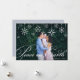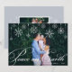 Um design elegante e clássico de cartão de feriado com um cheio sangrando fotos horizontais ou paisagísticas, com borda de floco de neve no topo. "Paz na Terra" aparece na escrita tradicional da caligrafia. Personalize com o seu nome de família e o ano em letras brancas no canto inferior direito, e adicione uma segunda foto no verso.