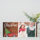 Roteiro de Pincel Moderno, Caminhão Vermelho Vintage com Aquarela com Árvore de Natal, Estilo de Câmera Instantânea Foto Feliz Cartão de Natal - Madeira Rústica e Fita de Artesanato Vermelha Strike