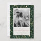 Vintage Clássico com fotos de duas faces da família Cartões de Natal com faixa escura padrão de folhagem de inverno com fotos personalizadas da família e mensagens de feriado.