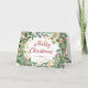 Este cartão de Natal elegante apresenta uma grinalda emoldurada de folhas e frutos modernos em verde, vermelho e dourado em aquarela, com tipografia em letra cursiva vermelha da moda.